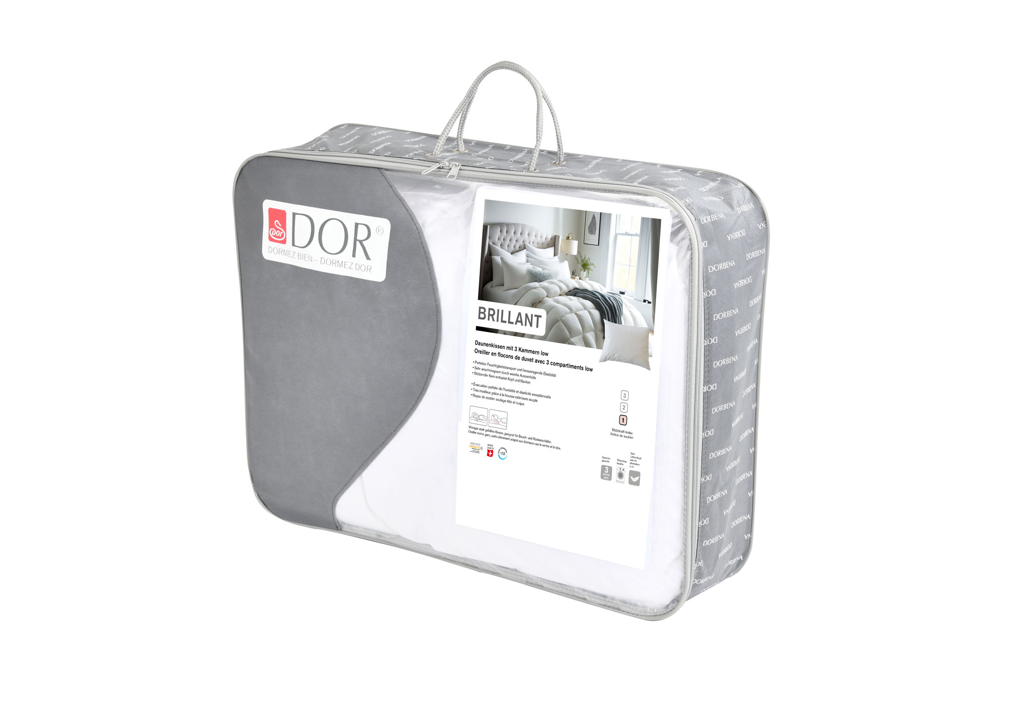 3-Kammer-Kissen low / Daunen und Federn